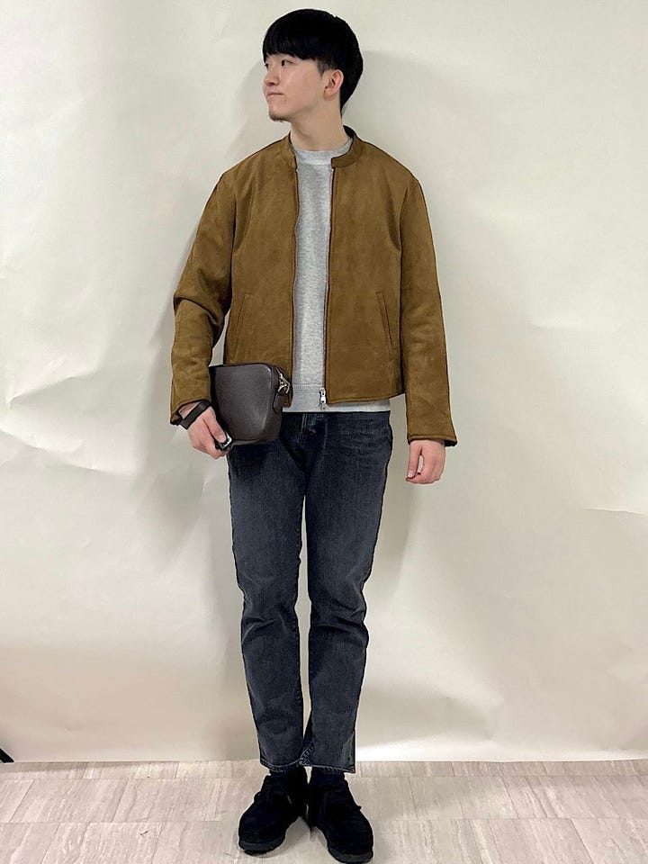 〔LARGE〕SHIPS: ポリエステル フェイク スエード シングル ライダース