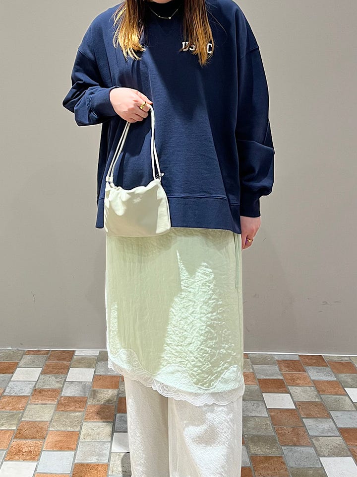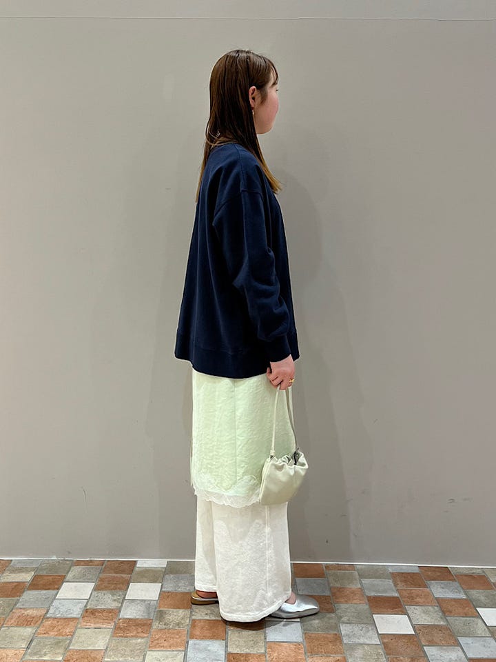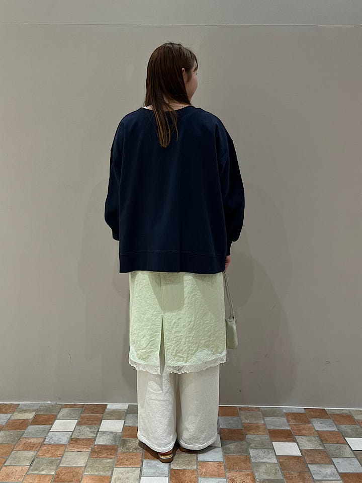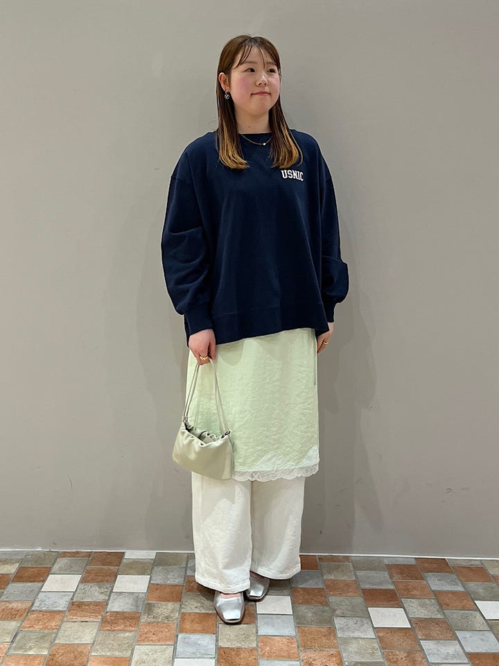 全体的にゆったりしていて、丈長めで安心感があります◎シンプルなのでシャツやキャミソールをレイヤードするのもお勧めです。着心地も良いので、カジュアルコーデにぴったりです^_^