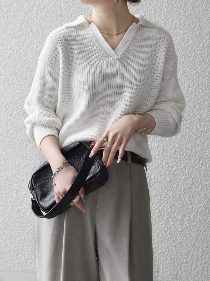 着用アイテム:SHIPS any:〈手洗い可能〉コットン ミックス スキッパー ポロ ニット プルオーバー