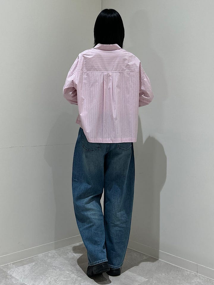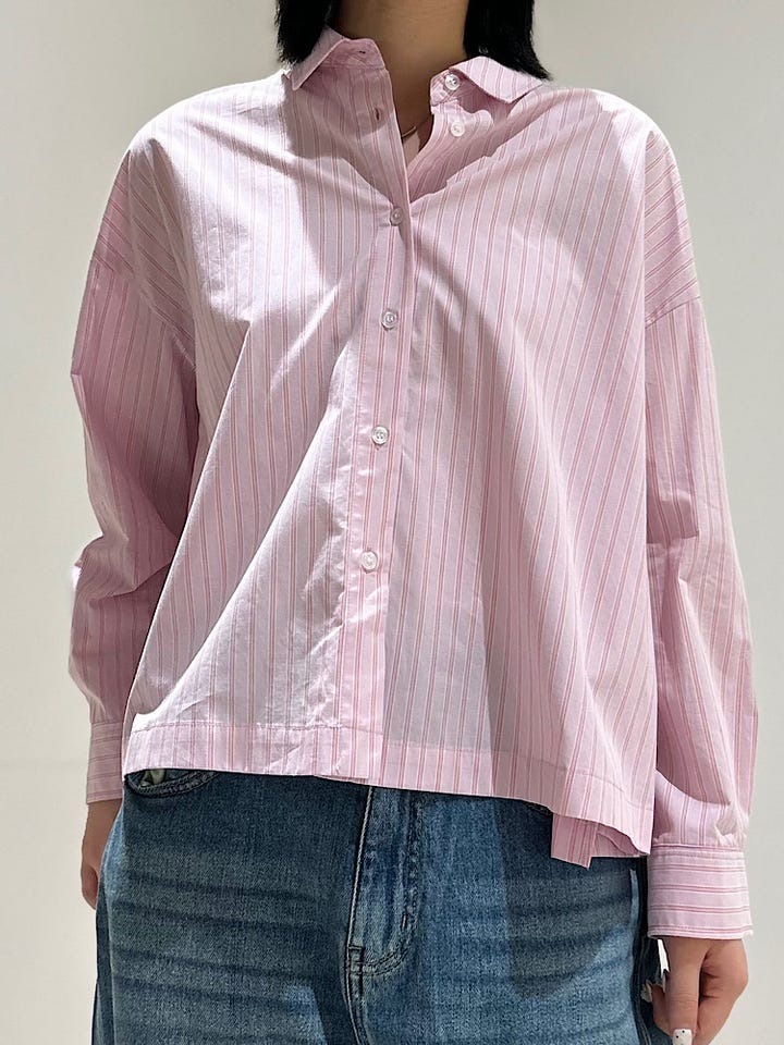 〔ONE SIZE〕SHIPS Colors:〈手洗い可能〉カラー ストライプ クロップド シャツ