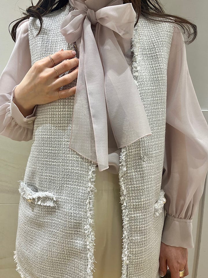 〔ONE SIZE〕トライスピン 杢 ツイード カラーレス ジレ(セレモニー対応可)