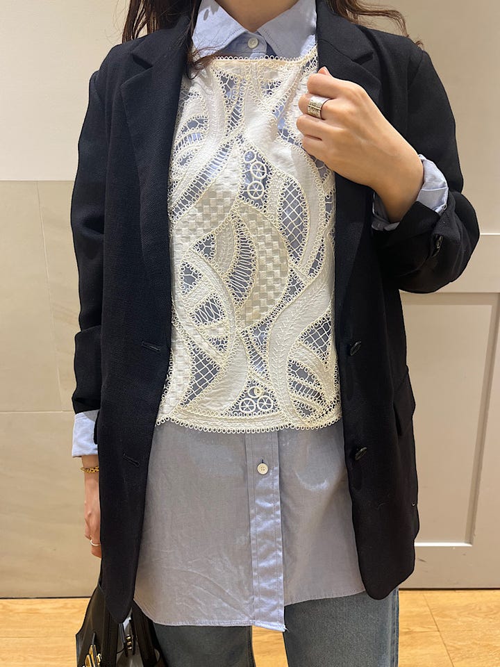 〔ONE SIZE〕〈手洗い可能〉刺繍 スカラップ レース ノースリーブ プルオーバー