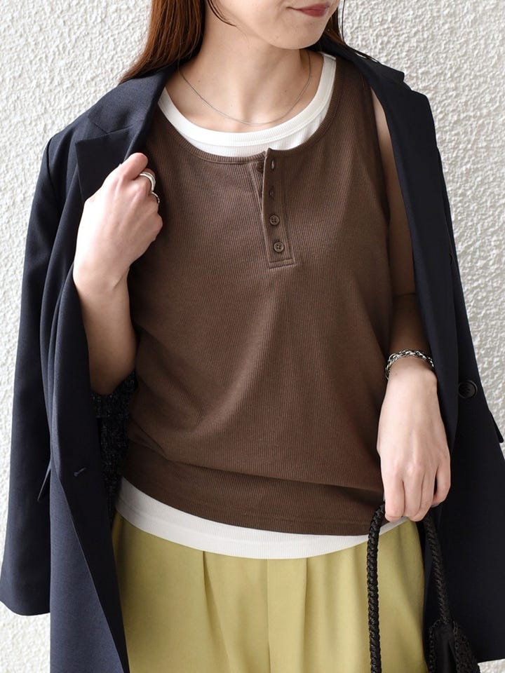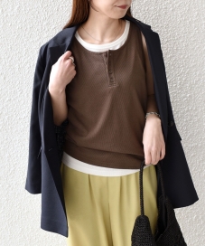 素材感・着心地:程よい肉感があるので2枚で重ねれば透け感も気にならず、夏場のトップスとしても◎
