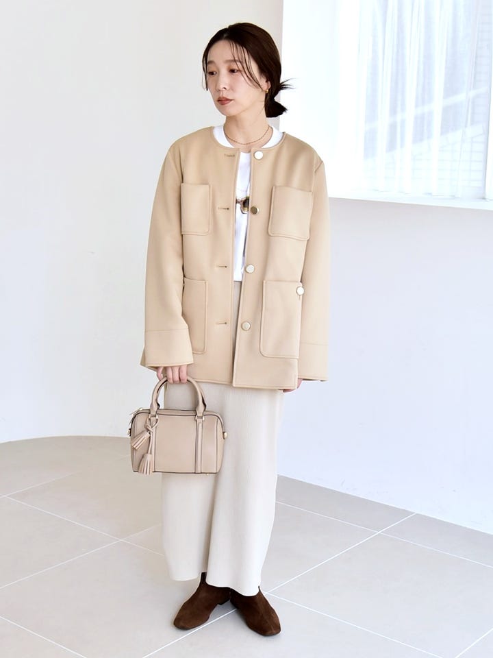 〔ONE SIZE〕quaranciel:〈手洗い可能〉ジャージー ポケット ノーカラー ジャケット