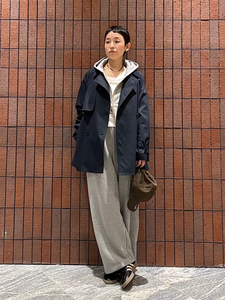 着心地:着丈が長すぎないので、カジュアルの中でも女性らしさのあるスウェットパーカです。コートやジャケットと重ね着で春のワンポイントにご活用下さい!