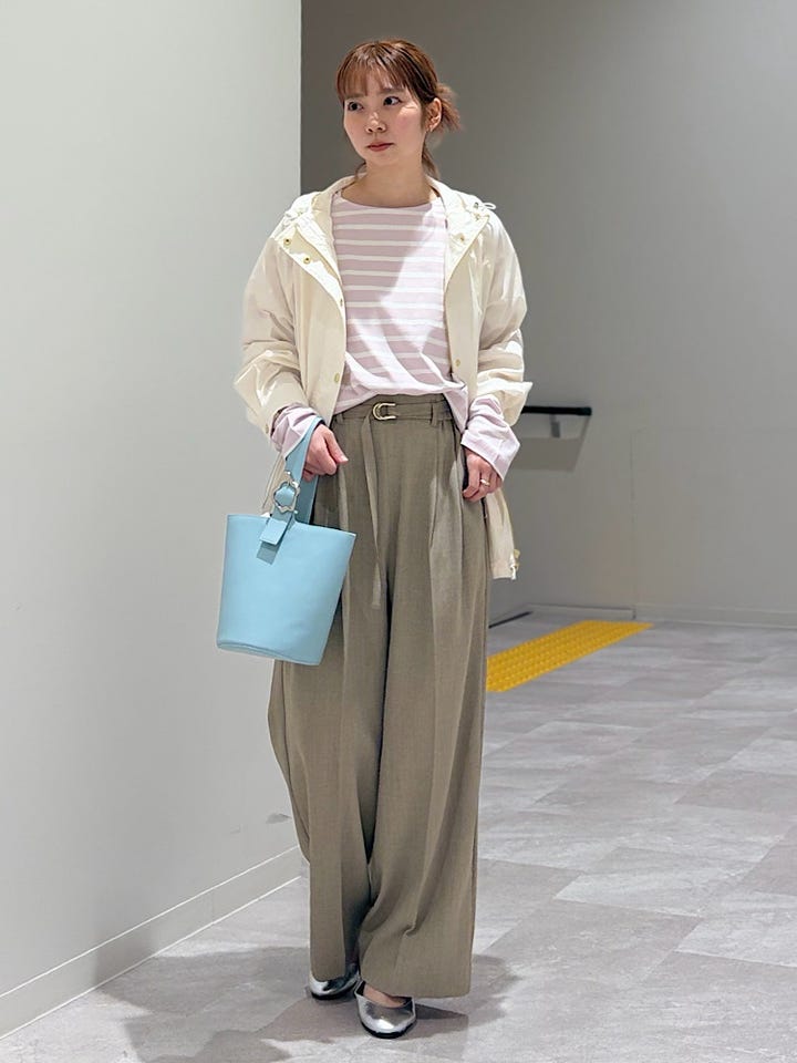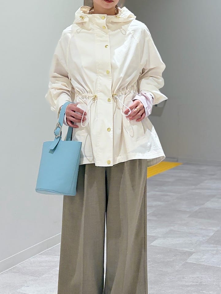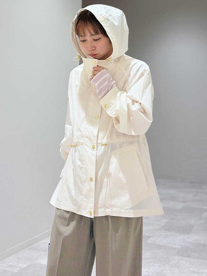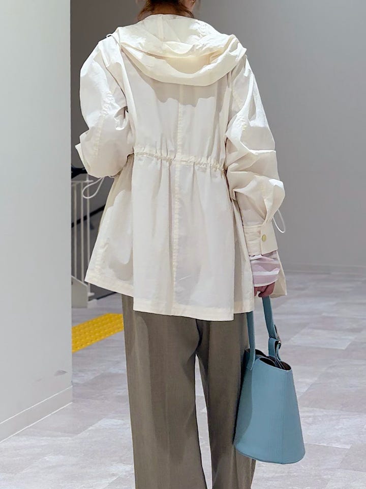 【素材感・着心地】透け感のある春らしいジャケット。ウエスト部分で絞れる為スカートとの相性も◎