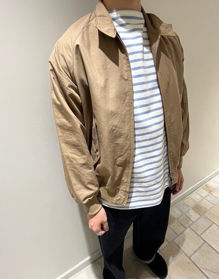 素材感・着心地:薄すぎない生地感で春アウターとして活躍する、表地はナイロンのパリッとした感じもあるがコットンの柔らかさもあり着心地が良い