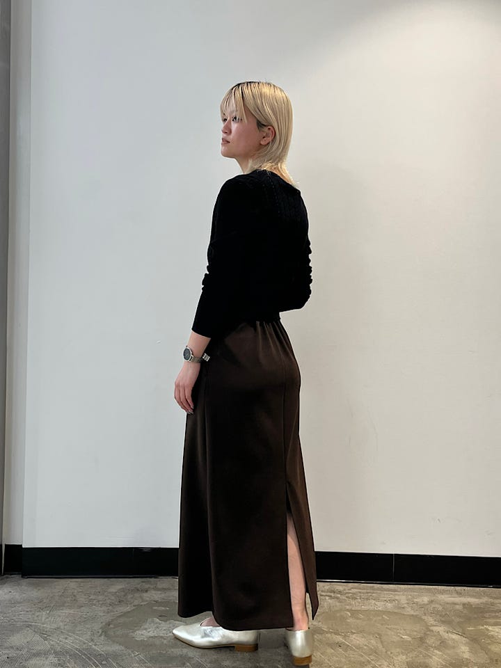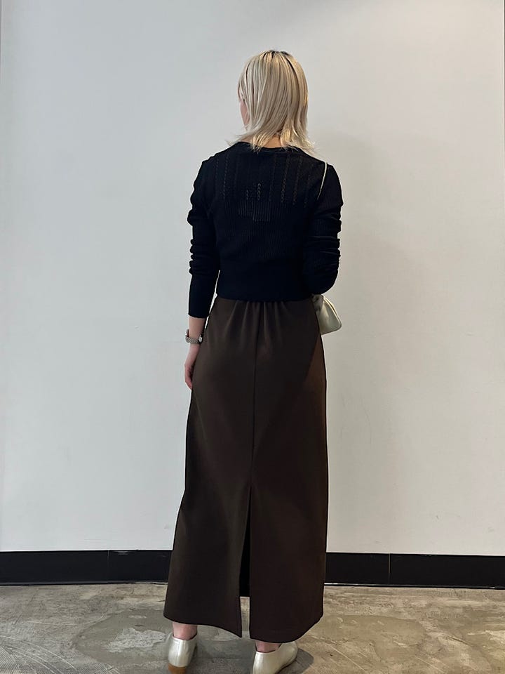サイズ感:腰回りがキュッとした作りで長過ぎないシルエットで女性らしく。やや細め