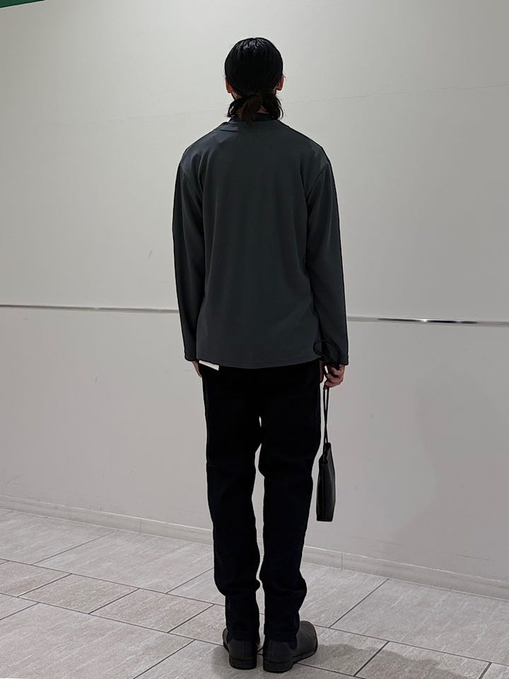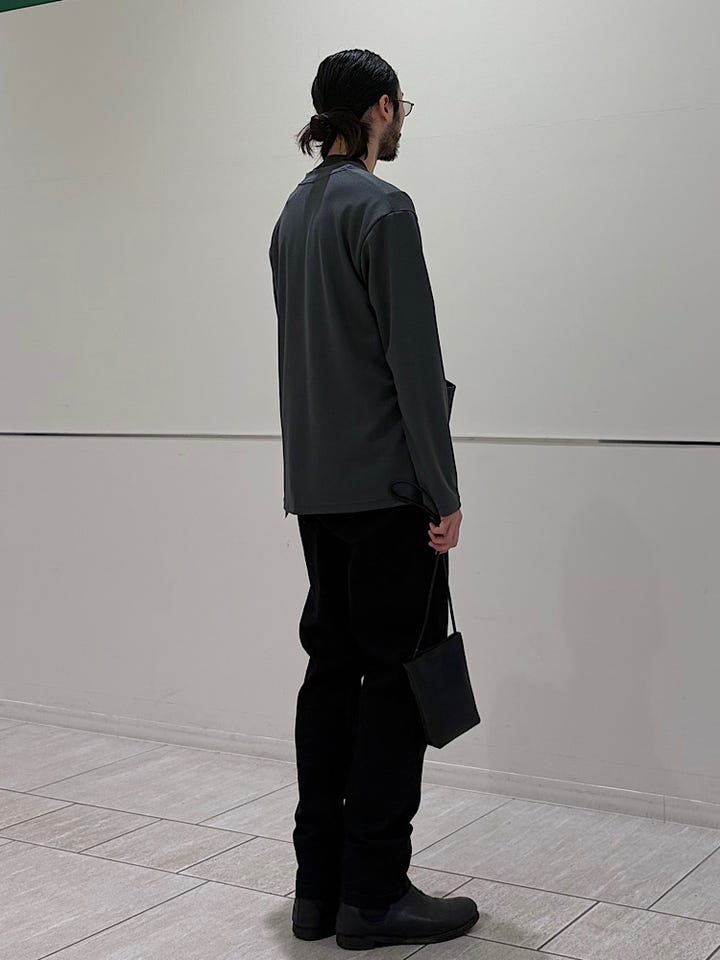 ネック後ろが高めに設計されているので、シャツやジャケットを上から着た際に直接首に当たらない様につくられています。