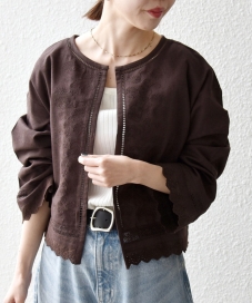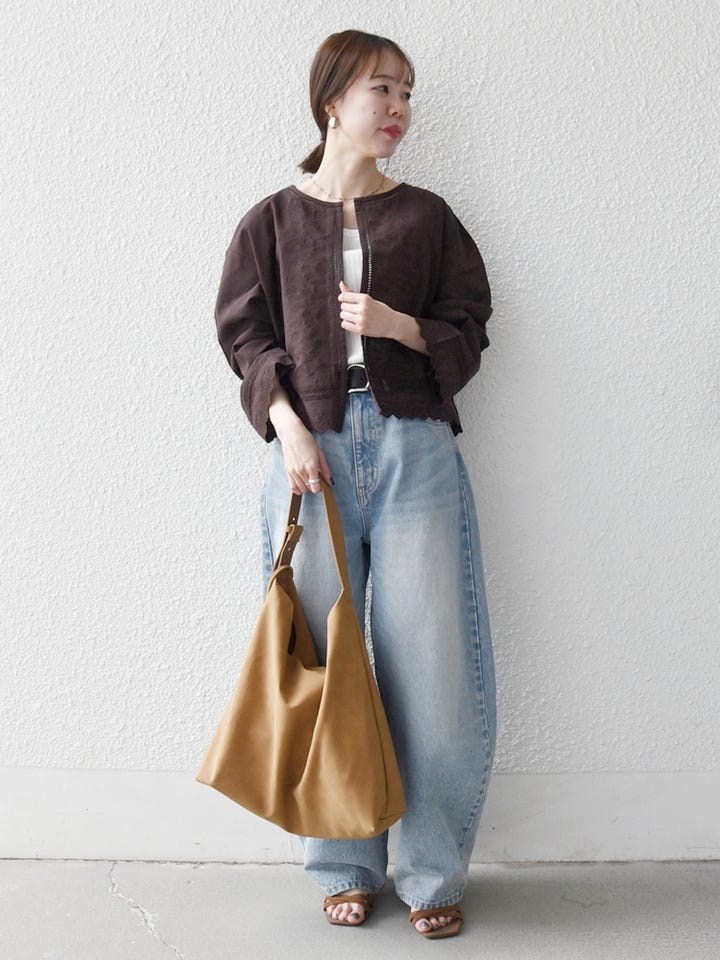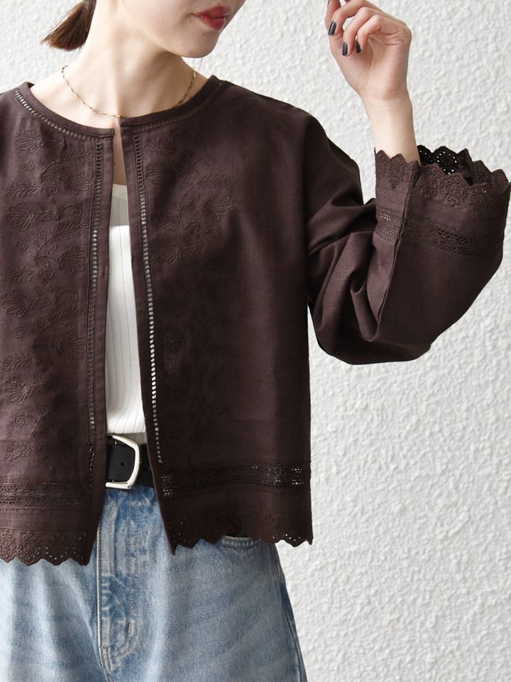 着用アイテム:SHIPS any:〈手洗い可能〉リネンミックス ハシゴレース シャツ カーディガン ブラウン