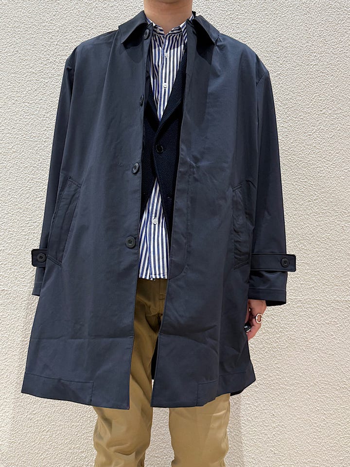 今回はSOLOTEXステンカラーコートにスリムテーパードチノを合わせました!