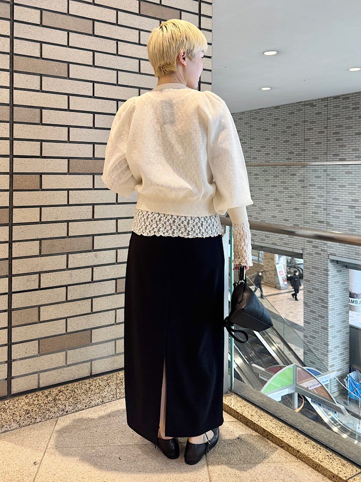 袖丈少し長めな設定なので、ニットやジャケットなど