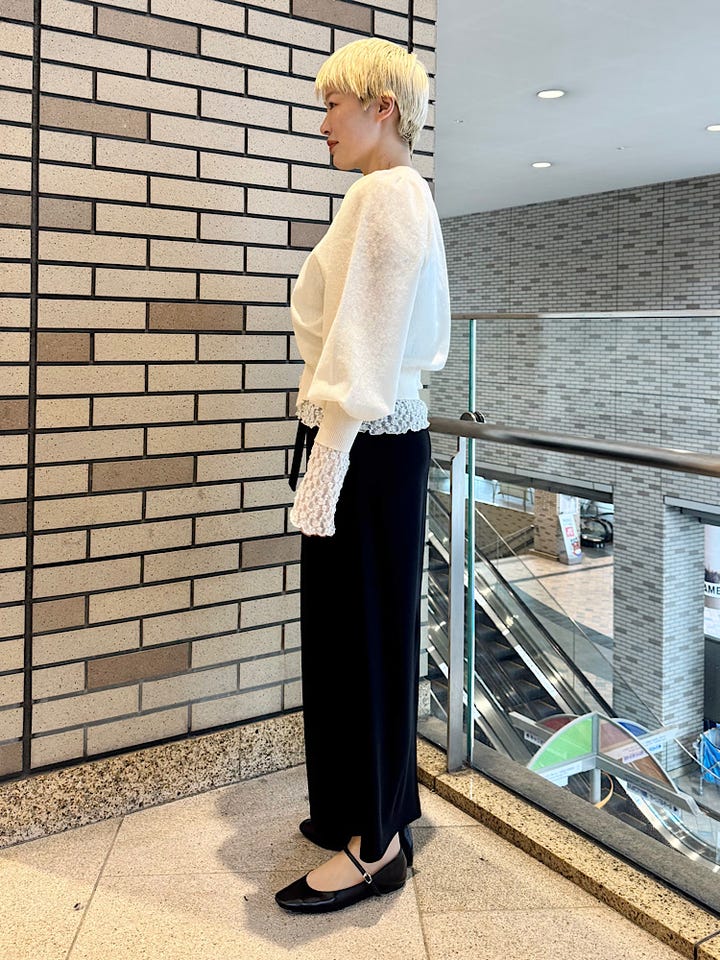 シアーな透け感があるので同系色のインナーで馴染ませたり、