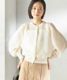 〔ONE SIZE〕〈手洗い可能〉メランジ シアー パフ スリーブ カーディガン