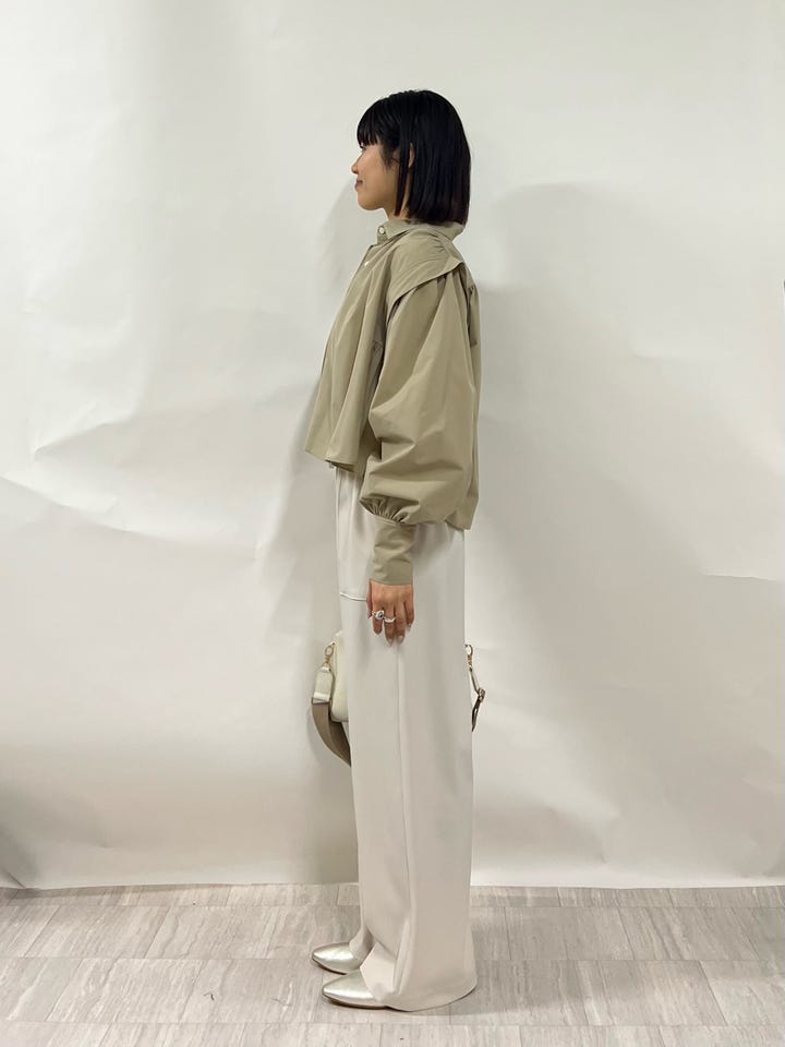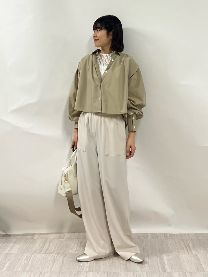 シルエットはストレートで、落ち感のある素材なのでよりスッキリ見えます。