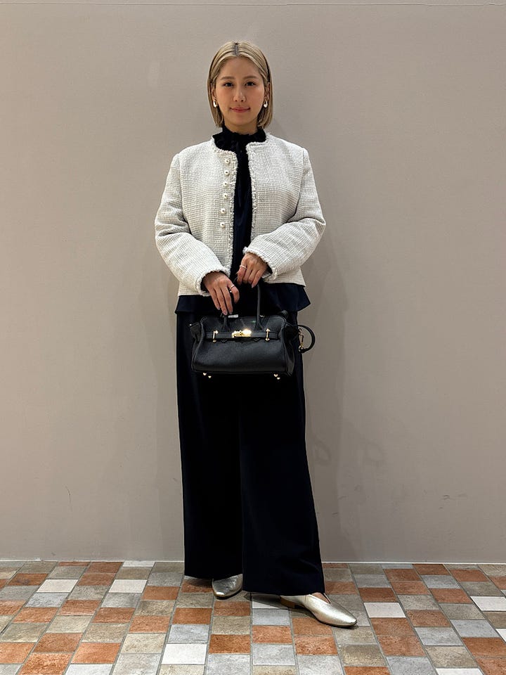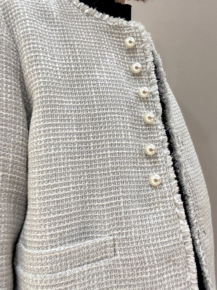 〔38〕トライスピン 杢 ツイード パール モチーフ ボタン ジャケット(セレモニー対応可)