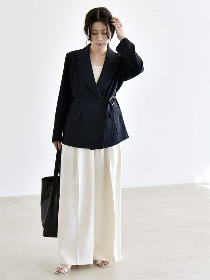 〔ONE SIZE〕quaranciel:〈手洗い可能〉リングベルト ライト テーラード ジャケット
