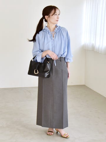 サイズ感:身幅や肩周りに余裕があるややルーズなサイズ感。着丈はヒップにかかる長さ。