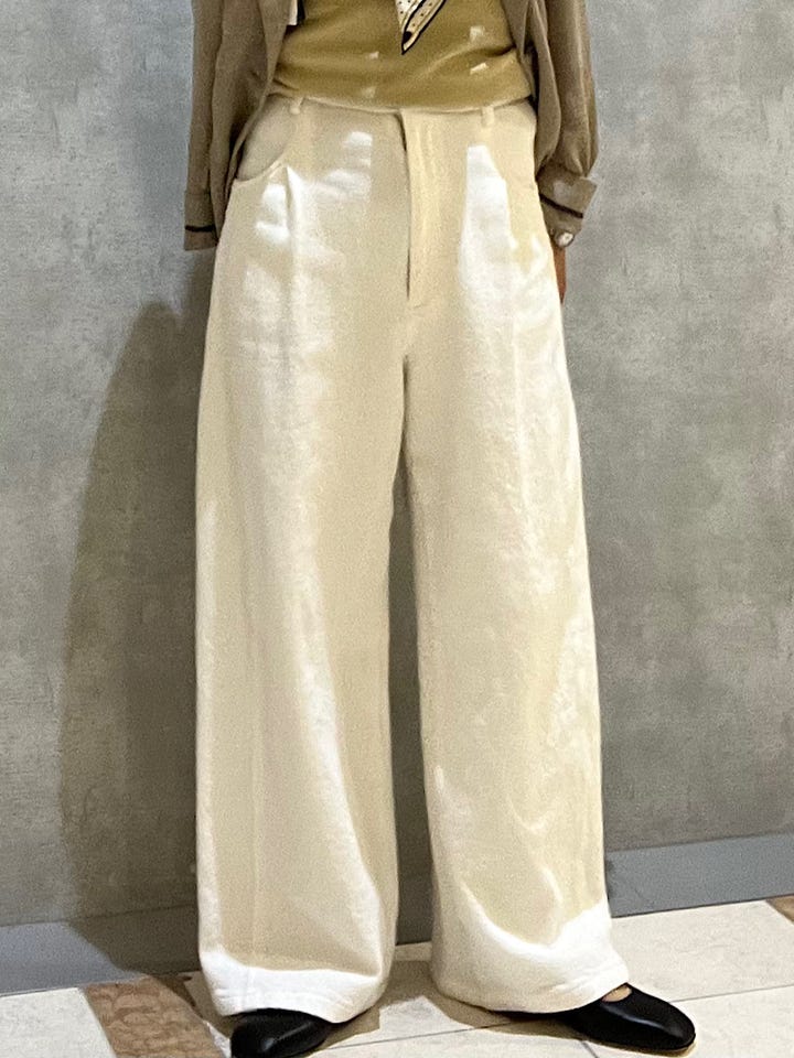 白ボトムスですがアンダーの透けも気にならない程よい厚みもあり安心して着用出来ます。