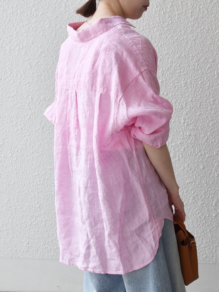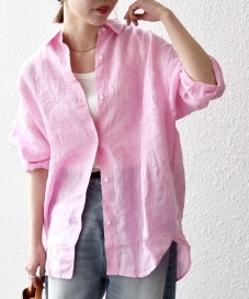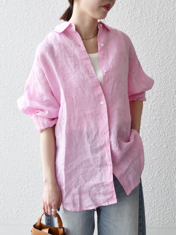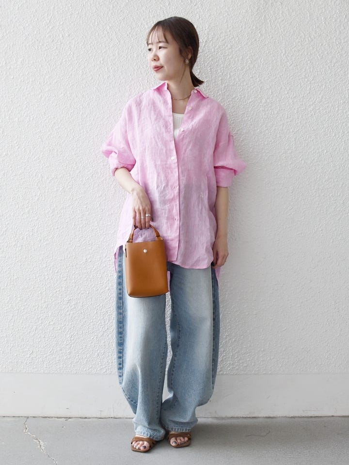着用アイテム:SHIPS any:〈洗濯機可能〉リネン レギュラーカラー ルーズ 刺繍 シャツ ピンク