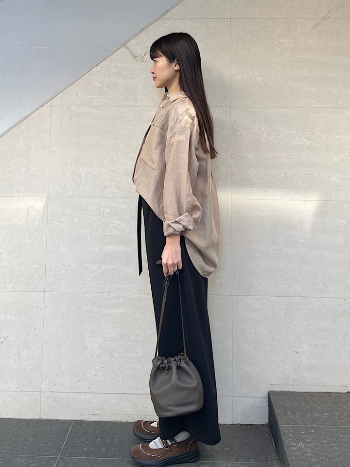 とても柔らかいリネンでクタッと落ち感も綺麗に出ます。肌離れ良く、気温の高い時期まで長く着用できます。