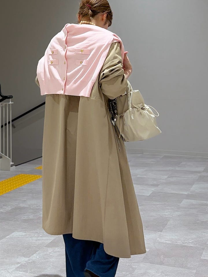 〔ONE SIZE〕SHIPS Colors:〈手洗い可能〉ツイル ノーカラー タック コート◇