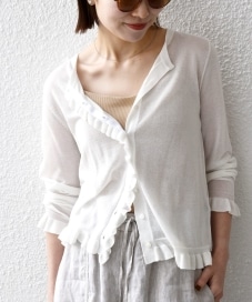 着用アイテム:コットン ミックス シアー フリル カーディガン ホワイト