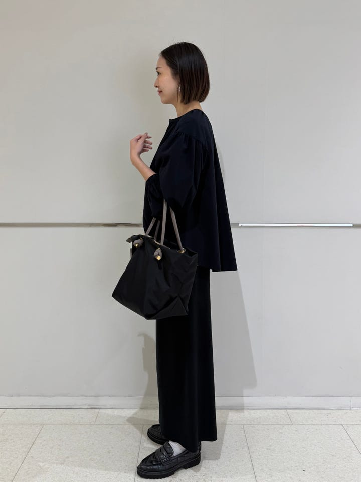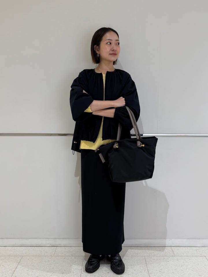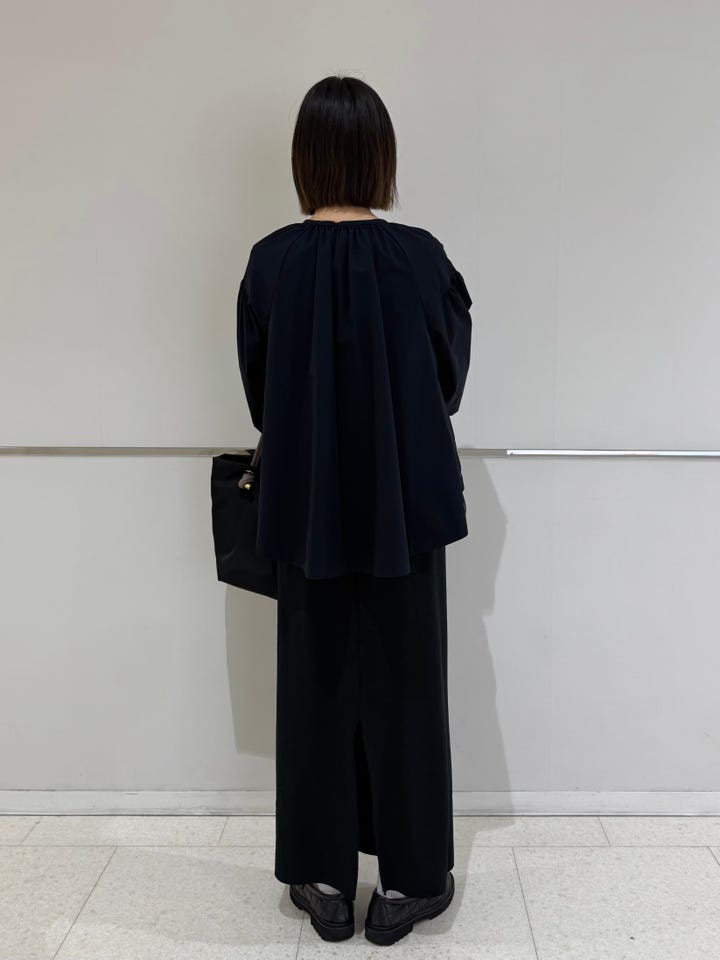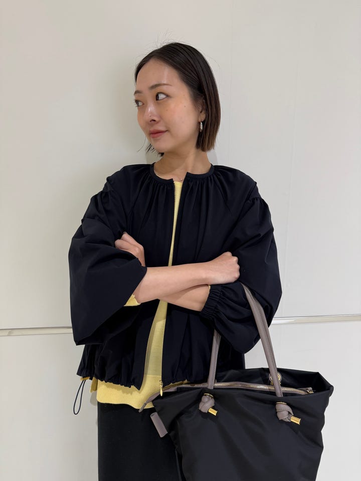 サイズ感・着心地:ゆとりあり。とても軽く、サラッと羽織れます。首周りや背中にたっぷり入ったギャザーが可愛い。裾は絞れるのでシルエットも好きなように変えていただけます。