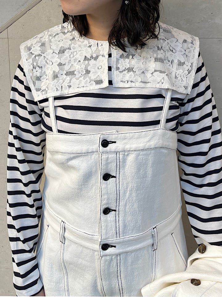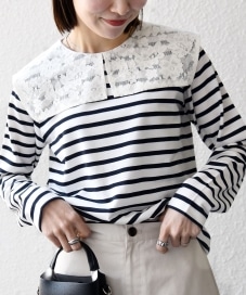 〔ONE SIZE〕SHIPS any:〈洗濯機可能〉マリンボーダー レース 襟 プルオーバー