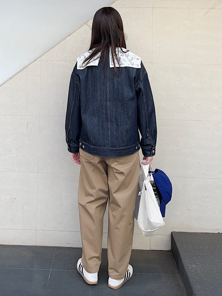 レースの襟をアウターの外に出してアクセントにしても可愛いです。
