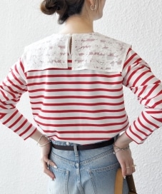 ◆ 商品名: マリンボーダー レース 襟 プルオーバー