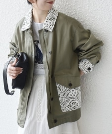 〔ONE SIZE〕SHIPS any:〈洗濯機可能〉コットン レース 切替 ミリタリー ジャケット ブルゾン