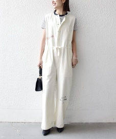 〔ONE SIZE〕【SHIPS any別注】PAYDAY:〈洗濯機可能〉ステンシル ロゴ プリント オーバーオール