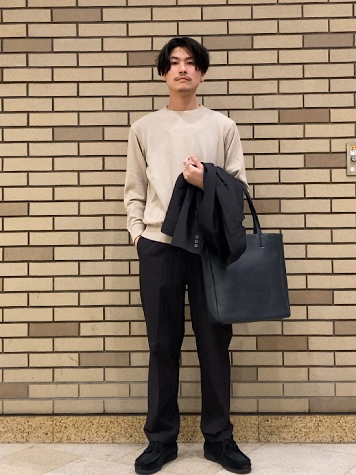 サイズ感:ジャストサイズ、もともと少しゆとりがあるのでカジュアルにもビジネスにもオススメのサイズ感です。