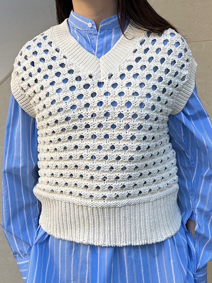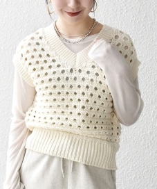 ◆ 商品名: コットン ミックス 透かし編み Vネック ベスト