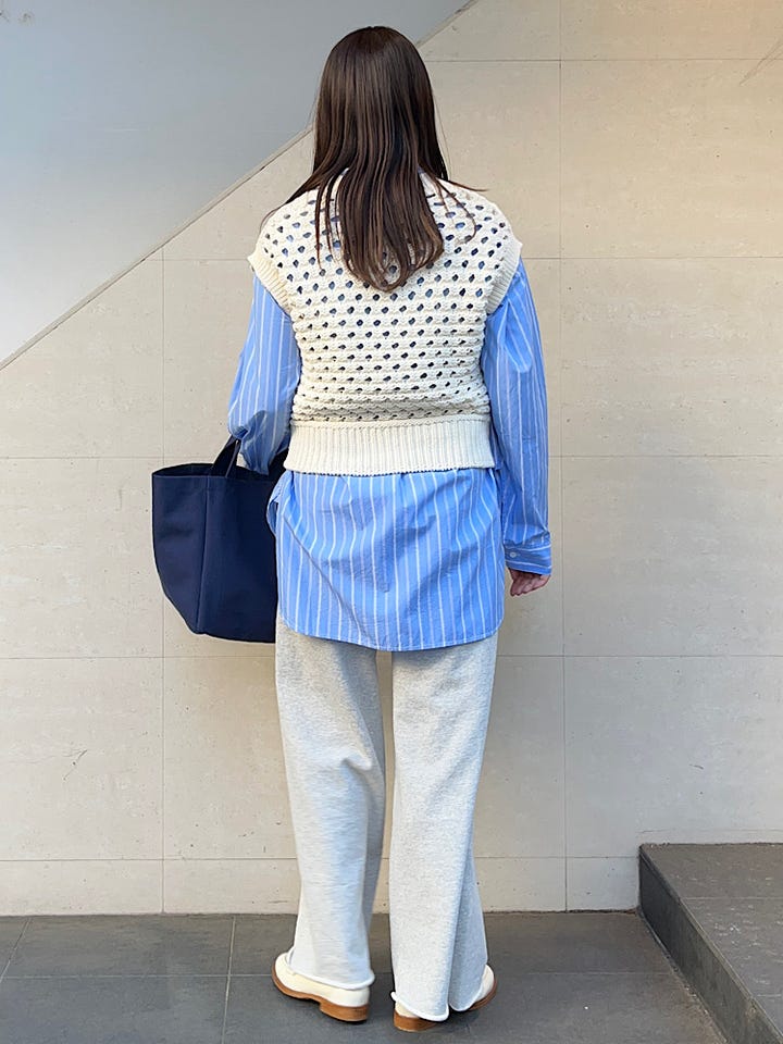 〔ONE SIZE〕SHIPS any:〈手洗い可能〉コットン ミックス 透かし編み Vネック ベスト