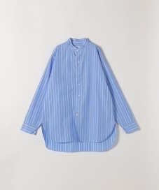 〔ONE SIZE〕ROYAL NAVY:〈洗濯機可能〉ストライプ バンドカラー ラウンドヘム シャツ