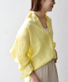 着用アイテム:リネン レギュラーカラー ルーズ 刺繍 シャツ イエロー