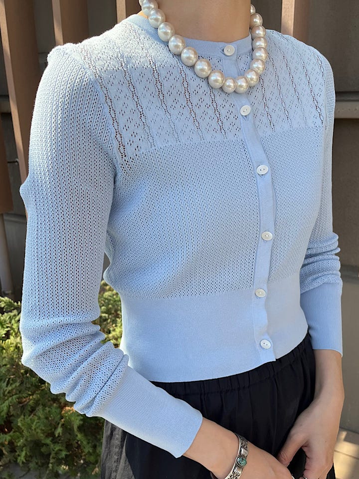 〔ONE SIZE〕堀田茜×SHIPS:〈手洗い可能〉アイレット ニット カーディガン