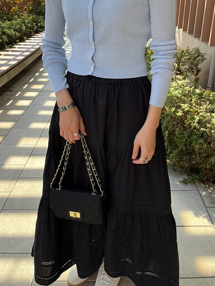 〔ONE SIZE〕【SHIPS別注】Fanaka:〈手洗い可能〉ライン レース ティアード スカート