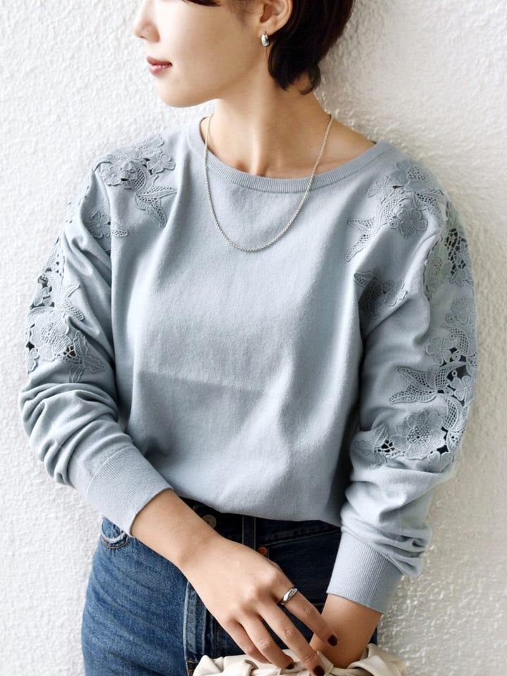 〔ONE SIZE〕【WEB限定】〈手洗い可能〉ショルダー レース コンビ ニット プルオーバー