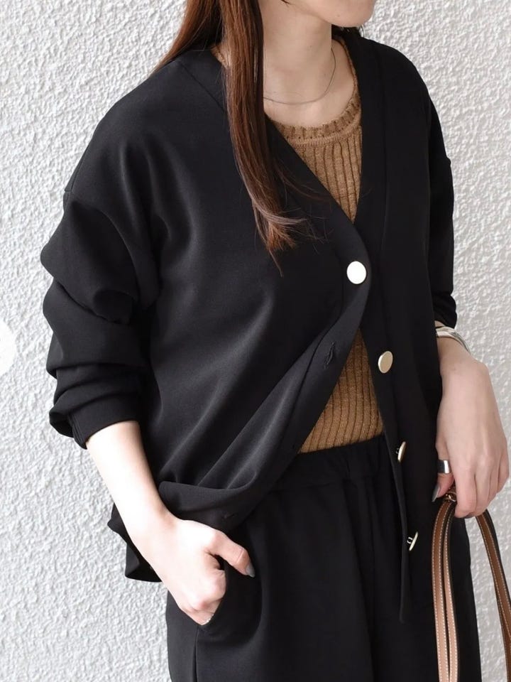 着用アイテム:カット ジョーゼット Vネック カーディガン(セットアップ対応可能)