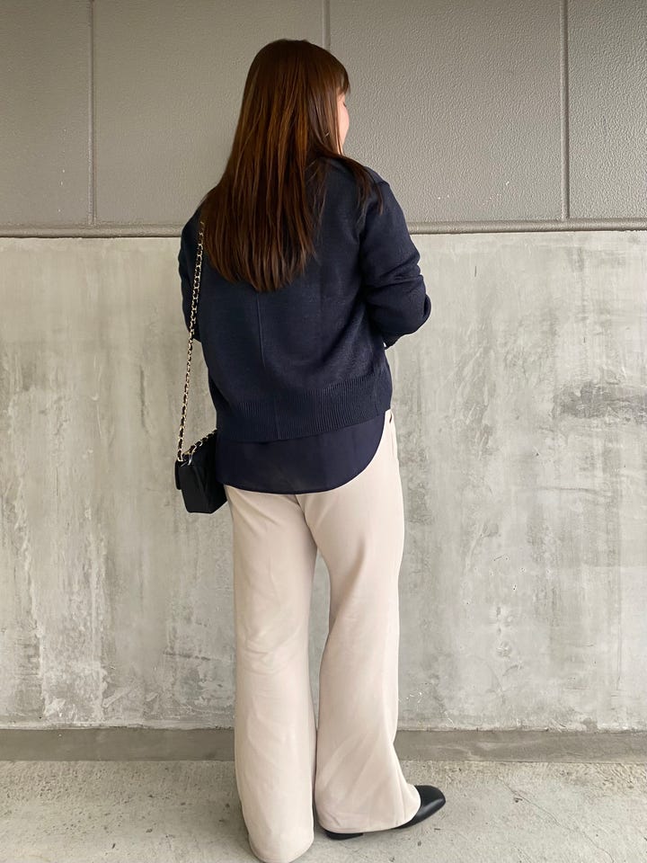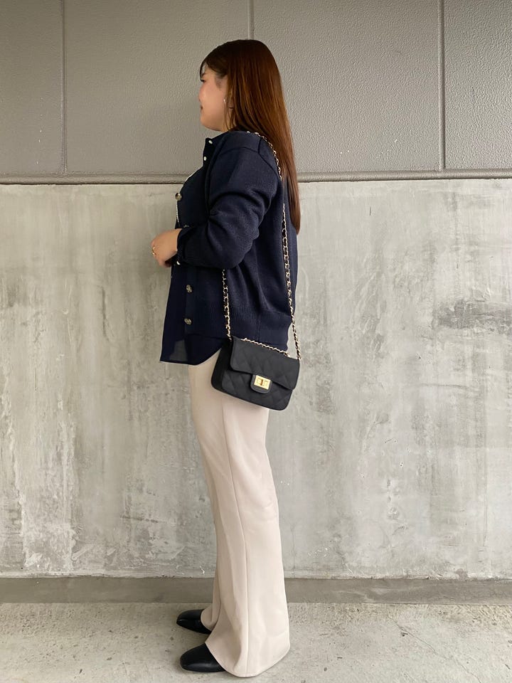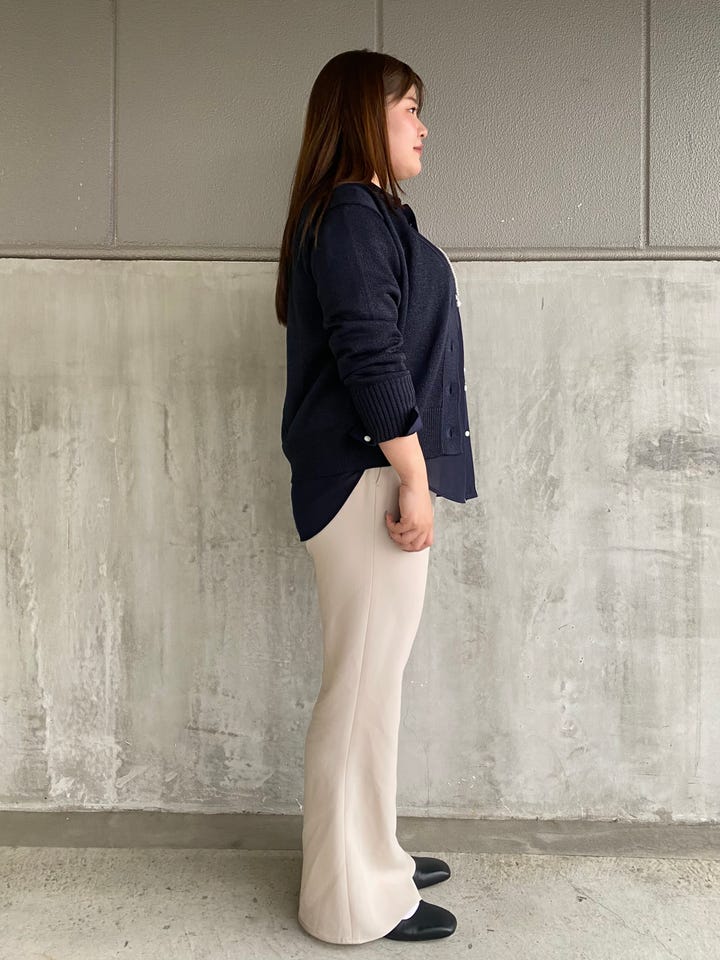 着心地:とても履きやすいフレアパンツです!生地が柔らかく、ストレッチ性も高いのでかなり動きやすくなっています。丈が少し長いので厚底かいつもよりウエスト上めで履くのがオススメです。