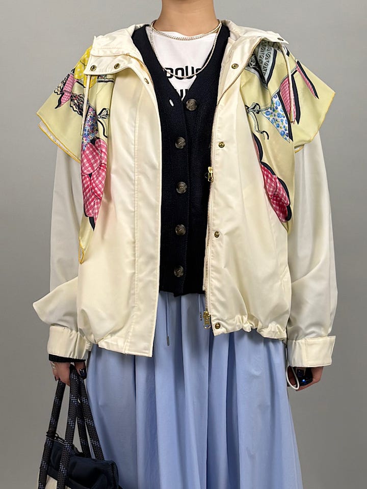 軽くなめらかな素材。肌触りよく着心地が良いです◎撥水加工なので、急な気候変化にも対応できます。ベスト型の中綿ライナーは取り外し可能です。気温に合わせて調整していただけます。