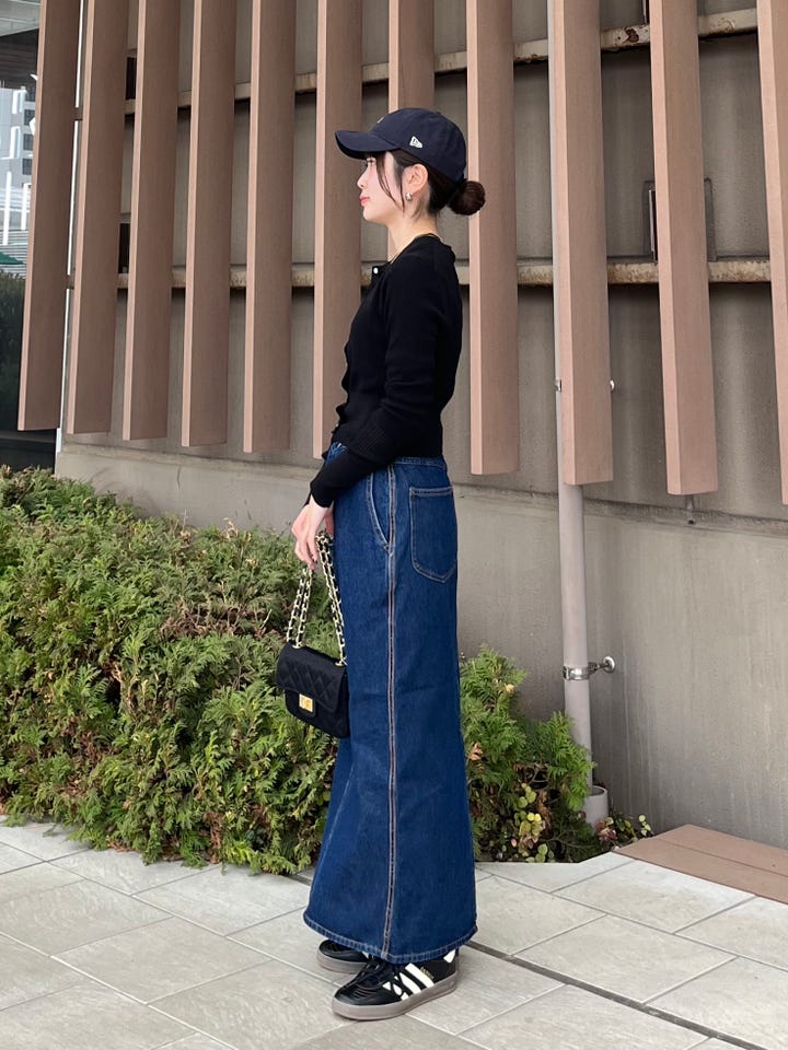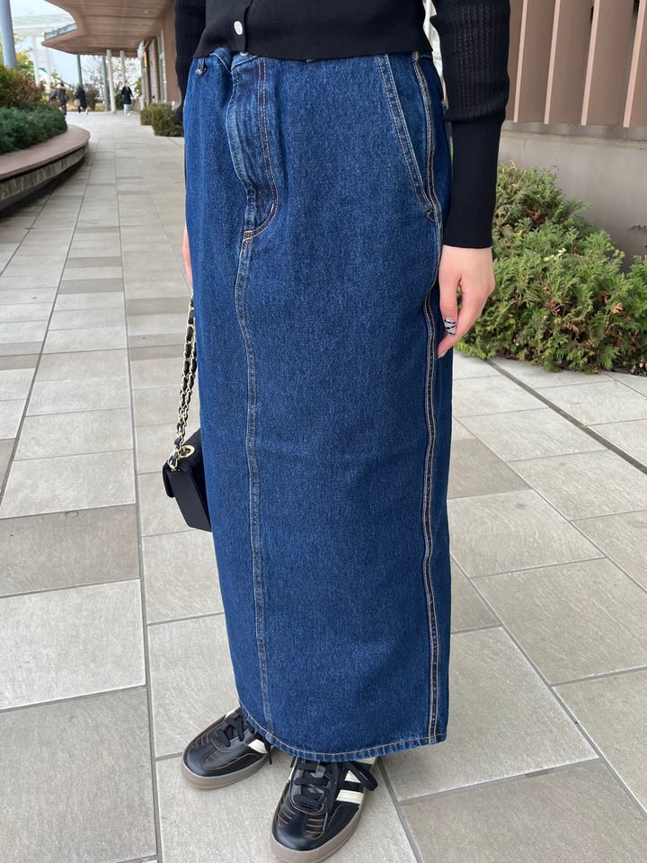 〔40〕SHIPS Primary Navy Label:ワンウォッシュ 5ポケット デニム スカート