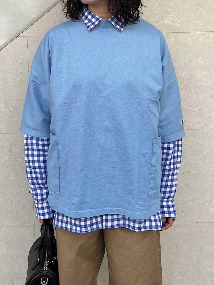 メンズのSですが、かなり大きめのサイズ感です。シャツやカットソーとレイヤードしても良いですし、もちろん一枚でも着ていただけます。サイドにポケットと championのロゴ入りで、シンプルすぎずカジュアルに合わせていただけます◎