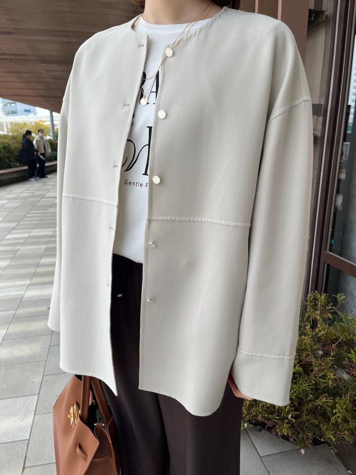 〔ONE SIZE〕〈手洗い可能〉ストレッチ 二重織 リバー 仕立て ノーカラー コート