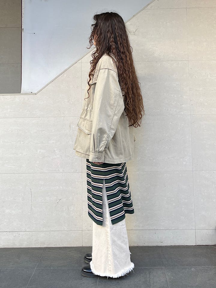 着心地:サイドにスリットが入っている為動きやすく、レイヤードもして頂けます。