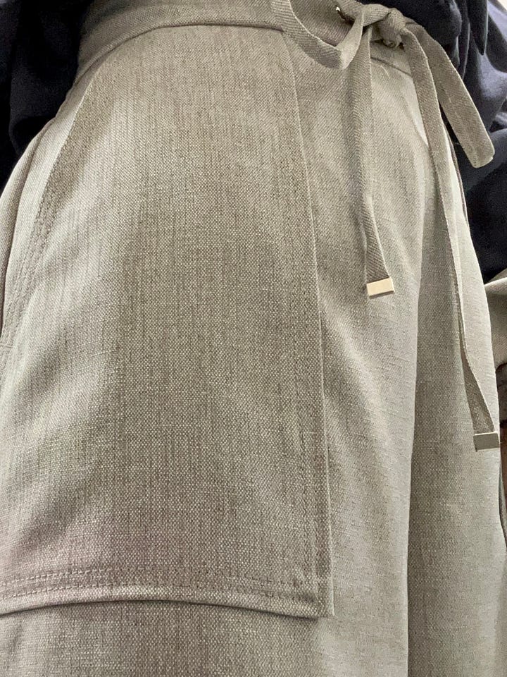 リネン見え素材でポリエステル100%なのでデイリー使いしやすく、シワになりにくいです!