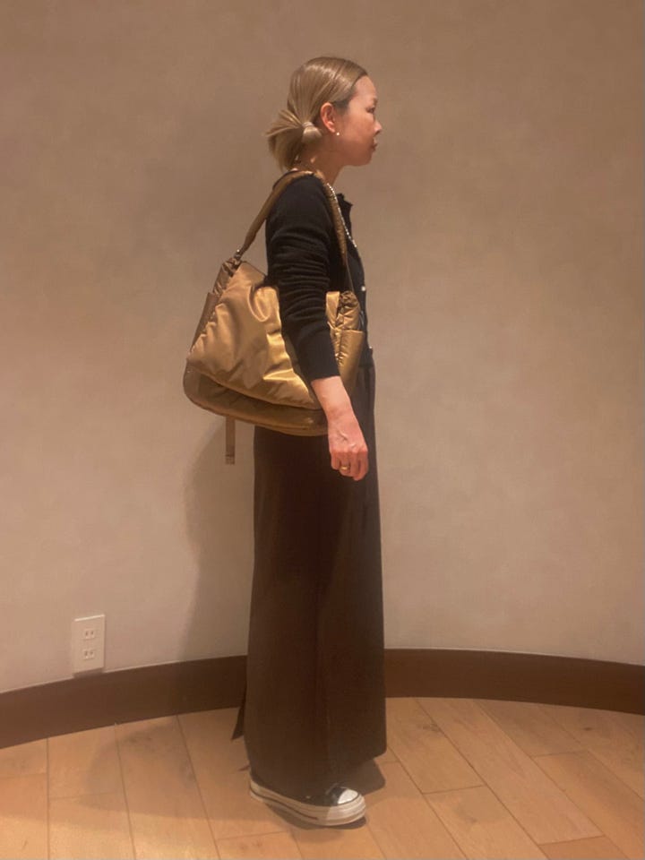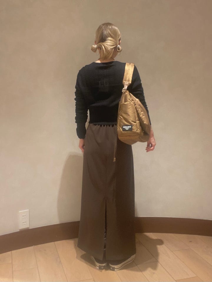 サイズ感:程よく身体に沿うシルエットです。ウエストもゴムでジャストサイズ。丈感もジャスト。